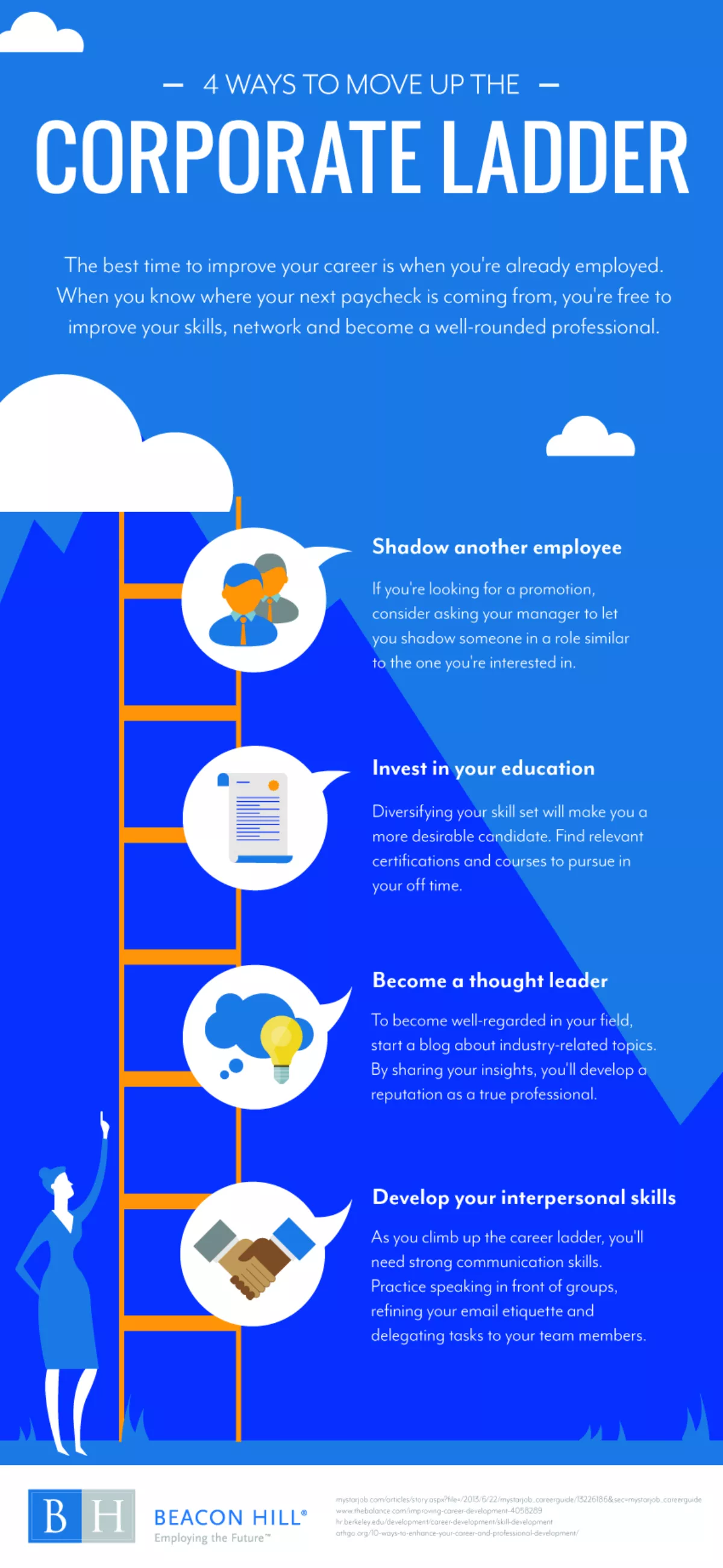 Investing in continued education, industry certifications or corporate-sponsored training programs are all good options for improving your perceived value in the marketplace. Likewise, it can help to work on your soft skills such as public speaking, writing and critical thinking. Enrolling with local networking groups or clubs can help you pinpoint weaknesses and show you how to become a better professional.