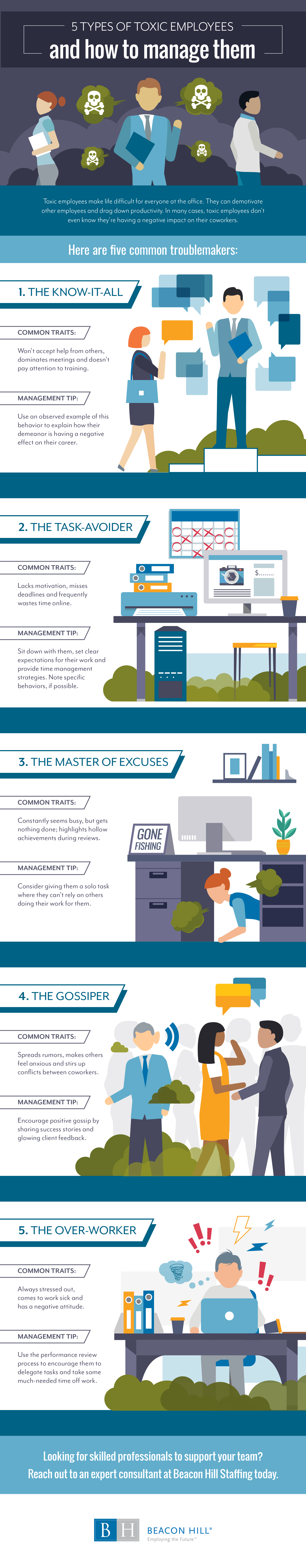 Check out our infographic below for tips on identifying common types of toxic employees: