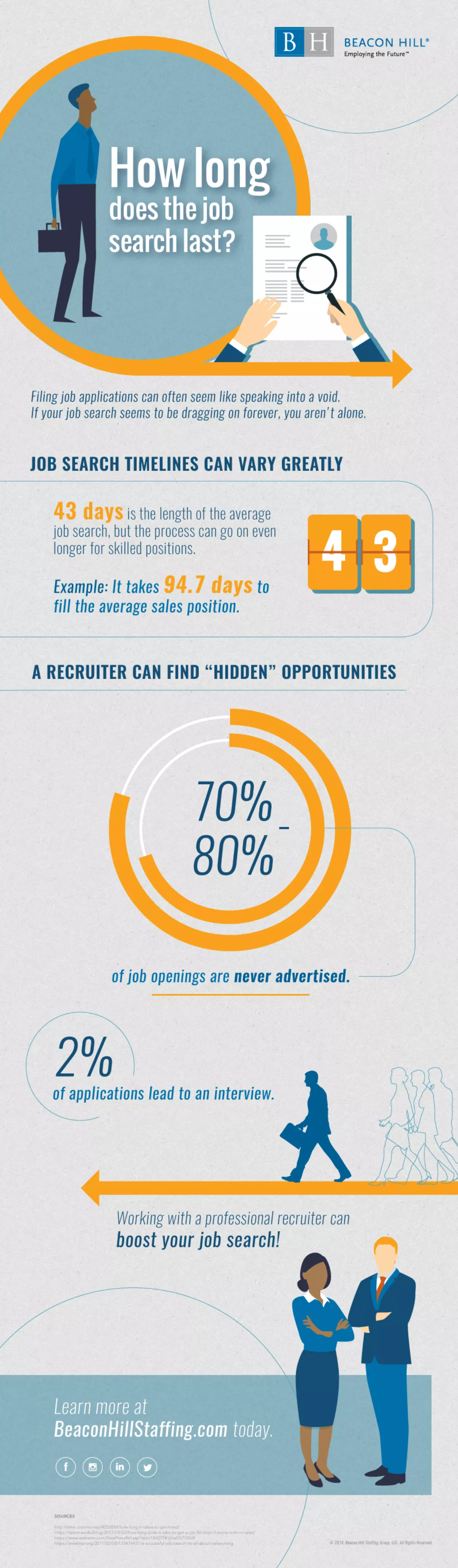 To supplement your job search, consider working with a professional recruiter. Staffing agencies have access to many job openings that are never made public. Check out our infographic below to learn more about why you should work with a recruiter: