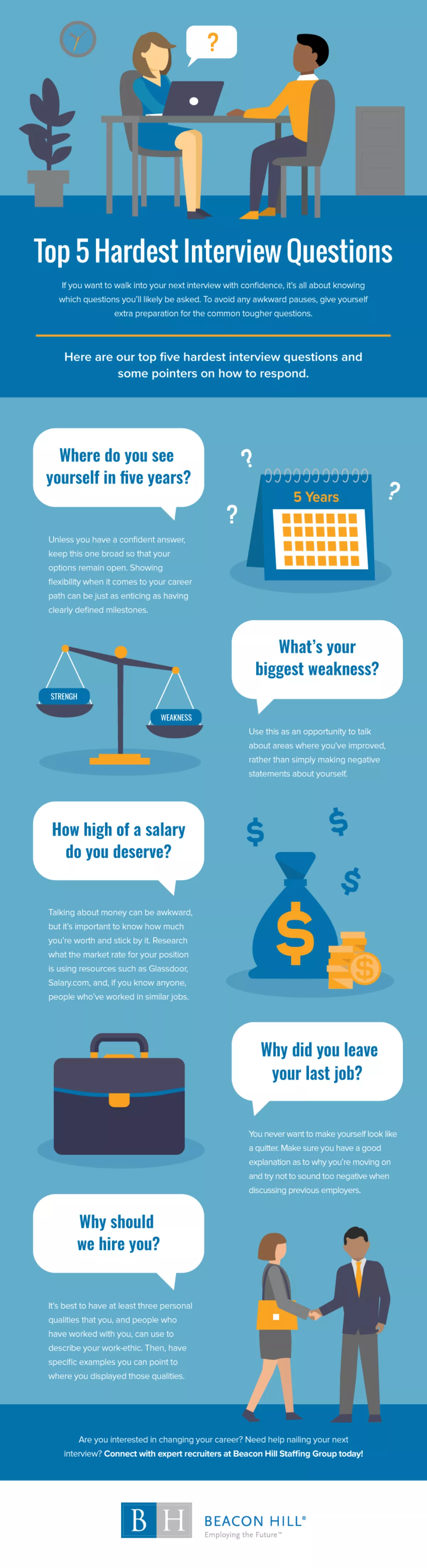 Here are the top five hardest interview questions to think about when preparing for your next interview: